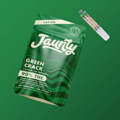 Jaunty’s classic 510-thread vape cartridges combine proprietary blends of cannabis-derived terpenes with CO2-extracted cannabis oil, delivering true-to-strain flavors and effects-based profiles. Green Crack is a heavy hitting sativa hailing a sweet flavor with tropical citrus notes. The high is heavily cerebral, spurring creativity and motivation to hit your stride and get things done. Primary terpenes: Myrcene, Limonene, Humulene